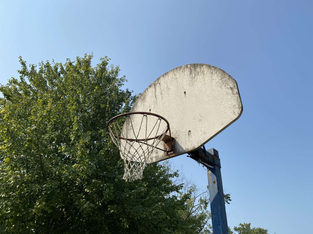 The original was an eight-foot tall version with a wooden backboard and wood supports. Bill, my older brother, wore that one out by the time I was 11.